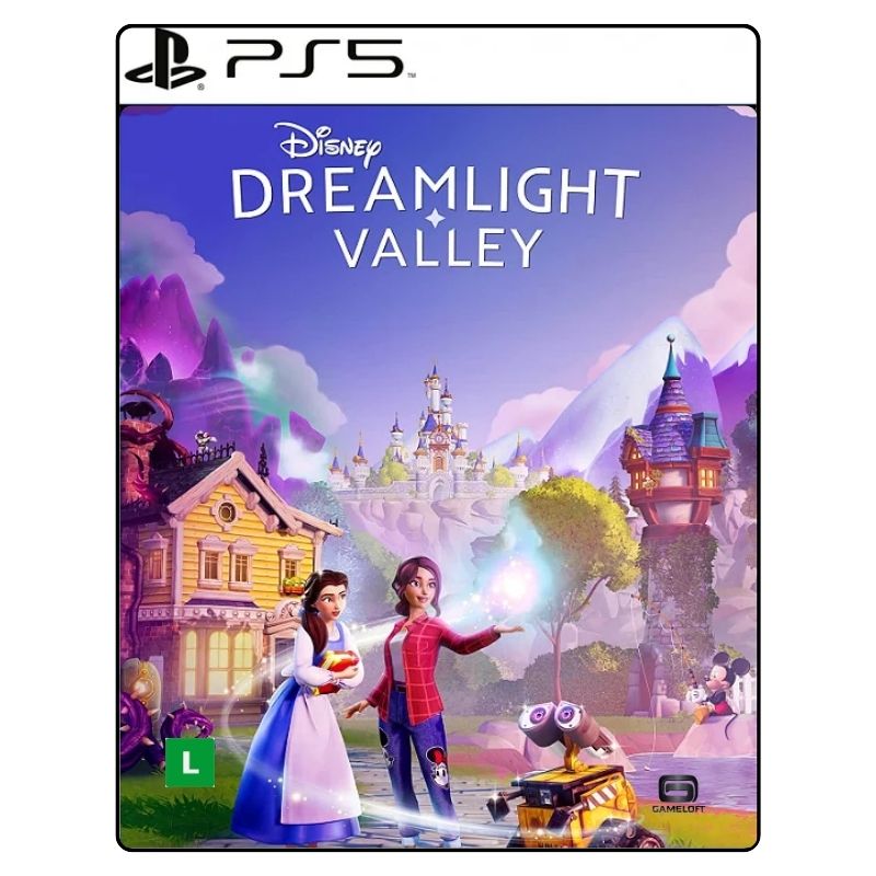 Disney Dreamlight Valley PS4, Disney Dreamlight Valley PS5, jogo Disney, jogo Pixar, simulação de vida, aventura mágica, personalização de personagem, construção de mundo, jogo casual, amizade Disney, jogo familiar, Gameloft, mundo encantado Disney