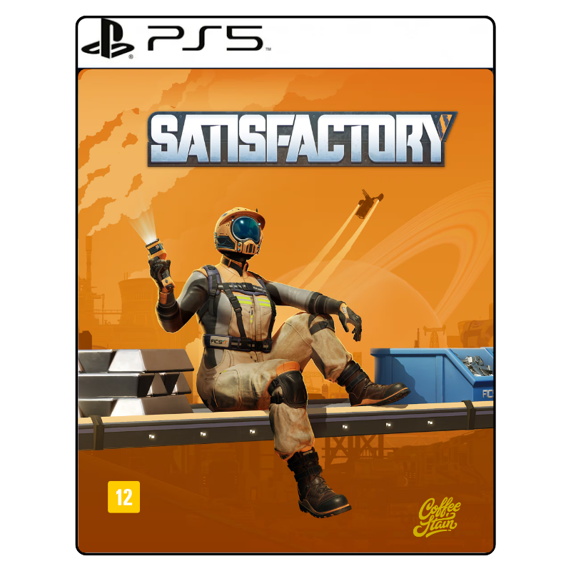 Satisfactory PS5, jogo de fábrica PS5, simulador industrial, construção de fábricas, jogo mundo aberto simulação, automação PS5, coop construção, Satisfactory digital, jogo estratégia industrial